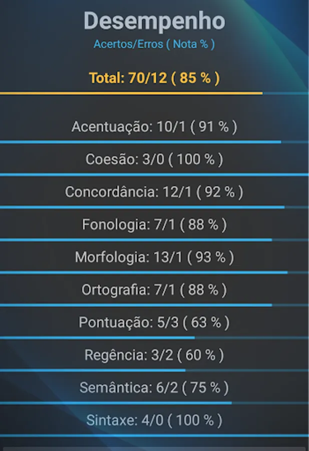 12 training modes, text interpretation, performance reporting, custom appearance, WhatsApp and study group integration.