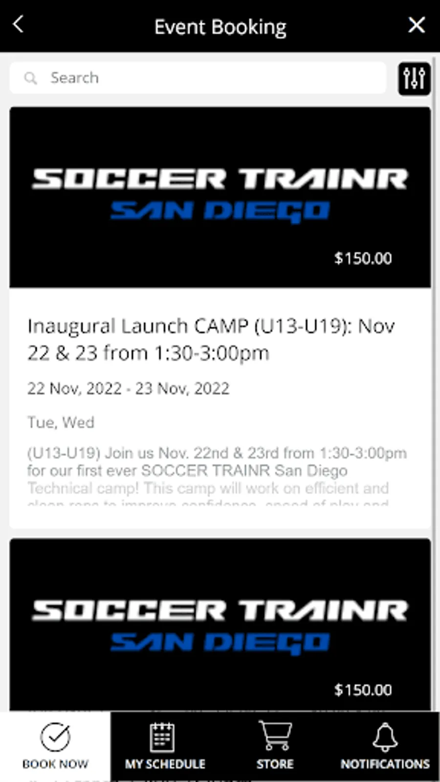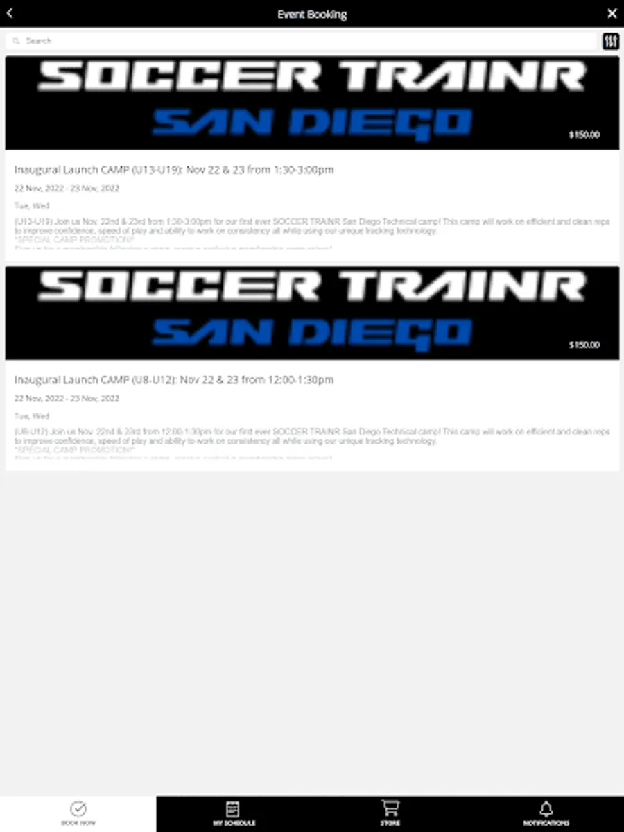 Download the app to view schedules & book sessions at Soccer TrainR – San Diego!
