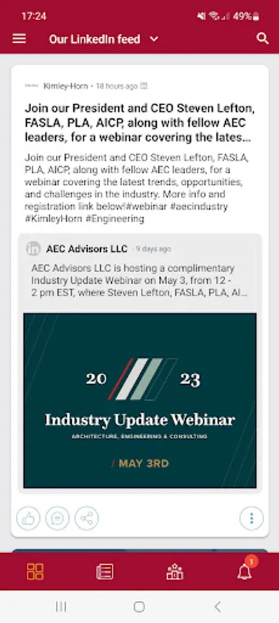 Around the Horn—Kimley-Horn’s internal communication app powered by Sociabble—is an essential tool for employees to stay connected and informed on-the-go.