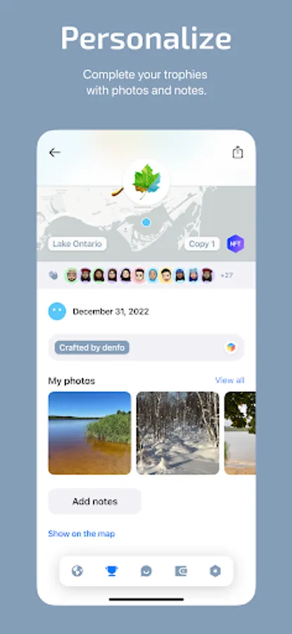 - Personalize collected trophies with personal photos and notes