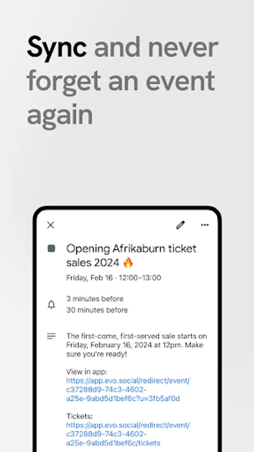 - Never miss an event as evo syncs to your digital calendar seamlessly