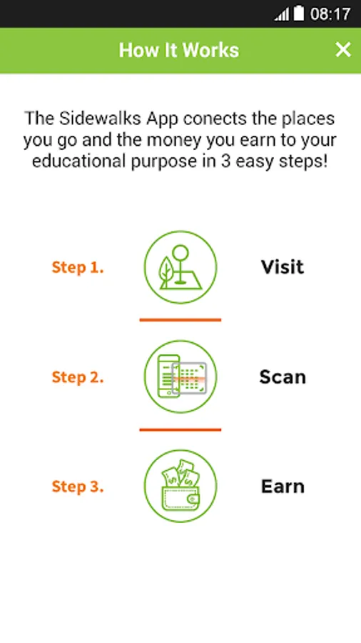 It’s easy and purposeful. Use the Sidewalks location-based app to Visit, Scan & Earn at local businesses, and let our automated platform do the rest!