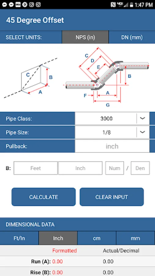 After 10 years working as an Industrial Pipefitter, it felt like something was missing. And here it is. A calculator that literally increases productivity as it calculates every aspect of the fit up for you. Simply supply a minimum amount of information as you normally would in your daily calculations and the calculator will determine angles, lengths, offset etc all with the click of a button. Modestly speaking this app does everything but fit the pipe for you.