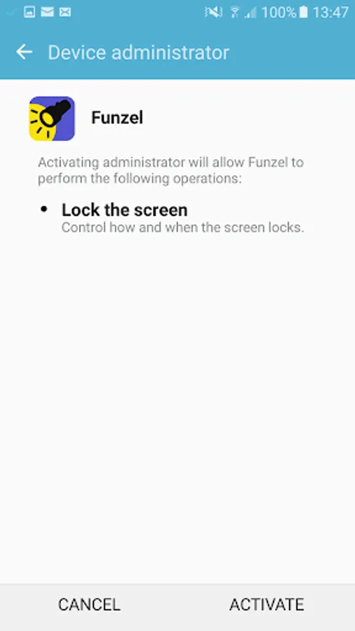 Funzel is an App which made your handy to an easy to use torch without annoying advertisement. Additional options make it possible to switch off the display automatically if the torch is switched on to avoid unwanted actions on the phone by accidentially touching the display. Switch off the ligth can be done be shaking the handy, if this option is enabled.