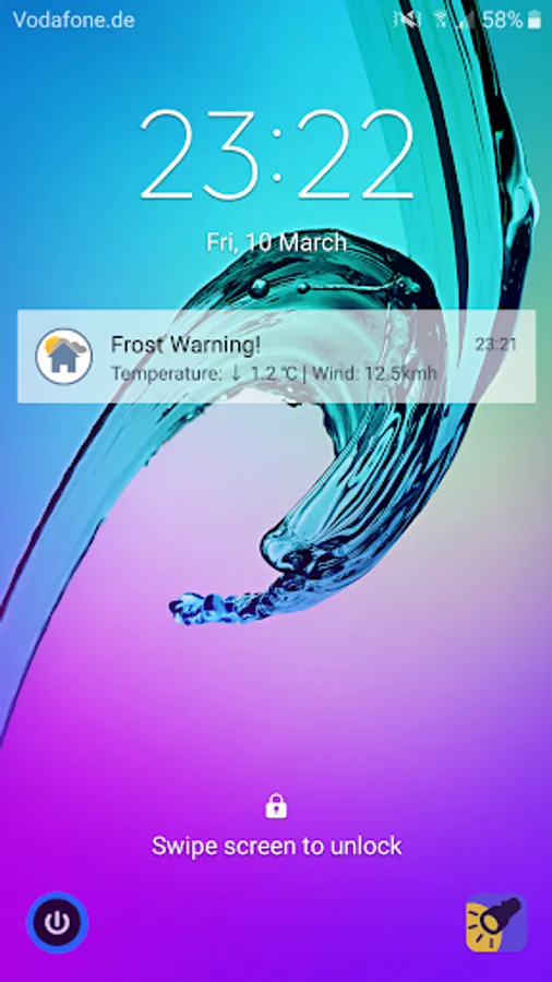 • 6 o’clock weather data info as lock screen notification