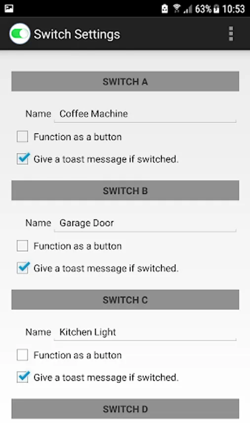 - a widget per switch