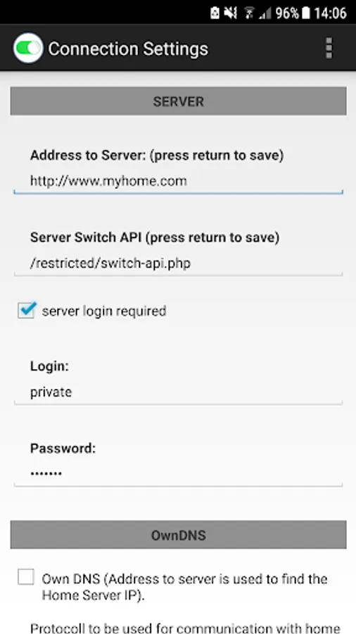 For further detailed information and a server switch-api example file, please have a look on the APP's website or APP integrated manual.