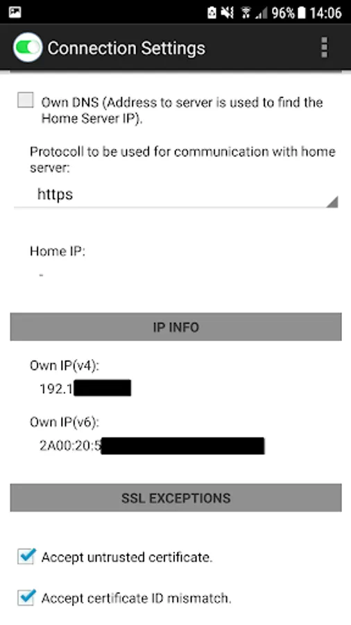 - SSL exceptions in case a self signed certificate will be used