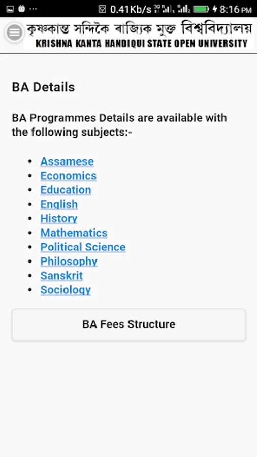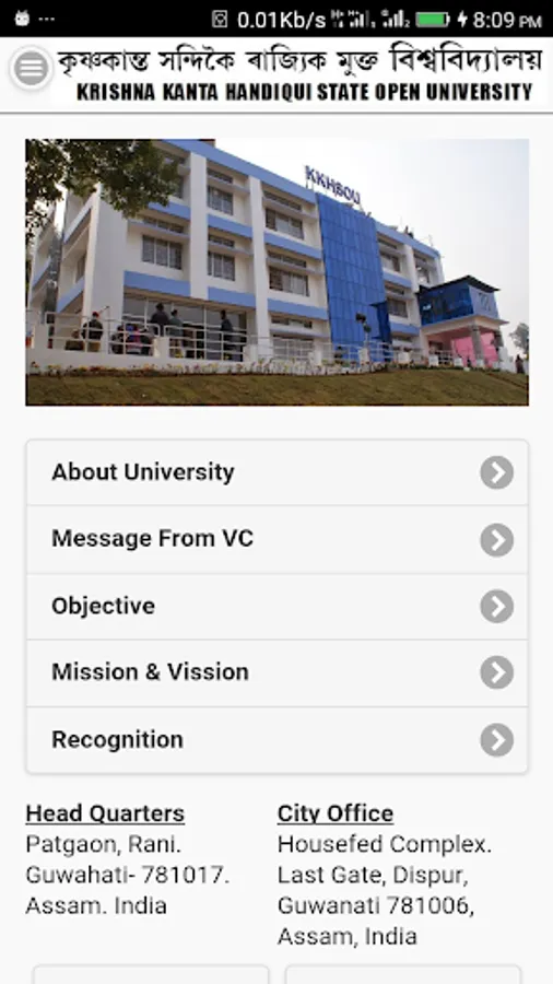 The main objective of this application is to provide the information to all the users of Krishna Kanta Handiqui State Open University. Using this application any user can view the course information,fees structures based on their requirements. At the same time they can directly call the study centre of KKHSOU. Learner can download assignments,old question papers and other important forms. On the next phase of the application, learner will able to read SLM on their mobile phone.