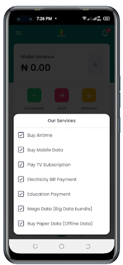 We offer instant recharge of Airtime, Data bundle, CableTV (DStv, GOtv & Startimes), Electricity Bill Payment and Education PINS