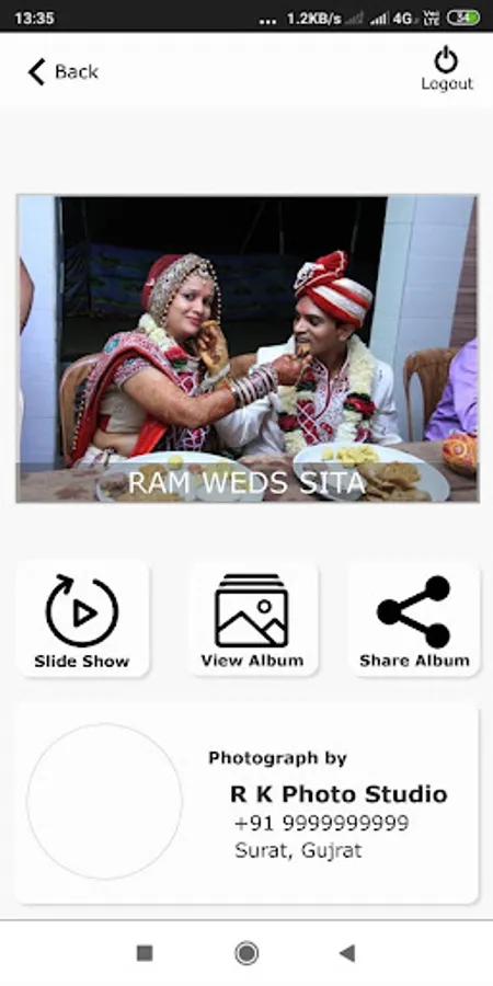 • While viewing Album. With single click, share Image with Friends, Family or Associates using Social Media.