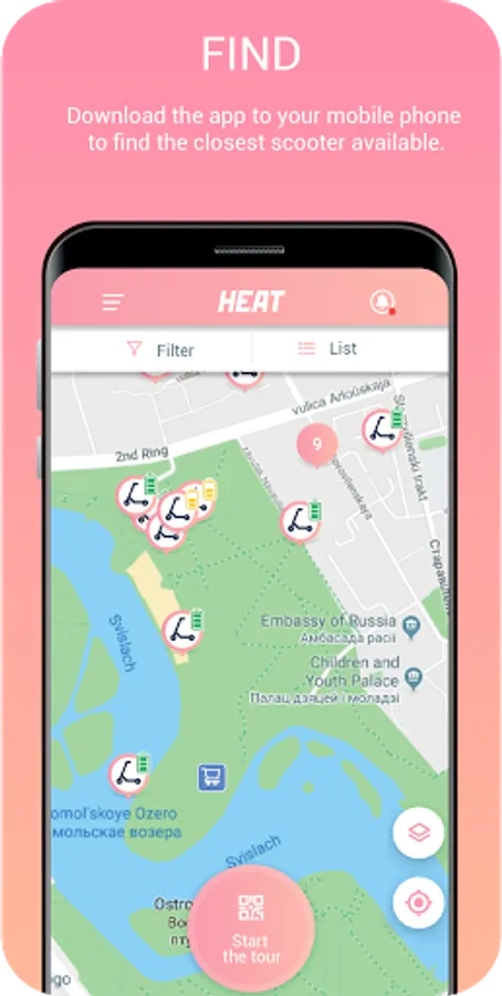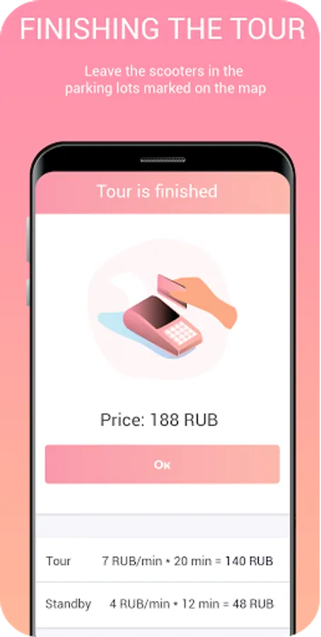 You can rent an electric scooter and finish your tour at one of several hundreds of Moscow bike parks placed on the city streets and marked in our application with a P sign.