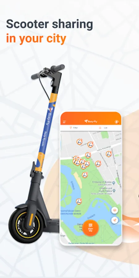 BusyFly is a unique international rental service project which unites Car Sharing, Scooter Sharing and Bike Sharing services in one app.