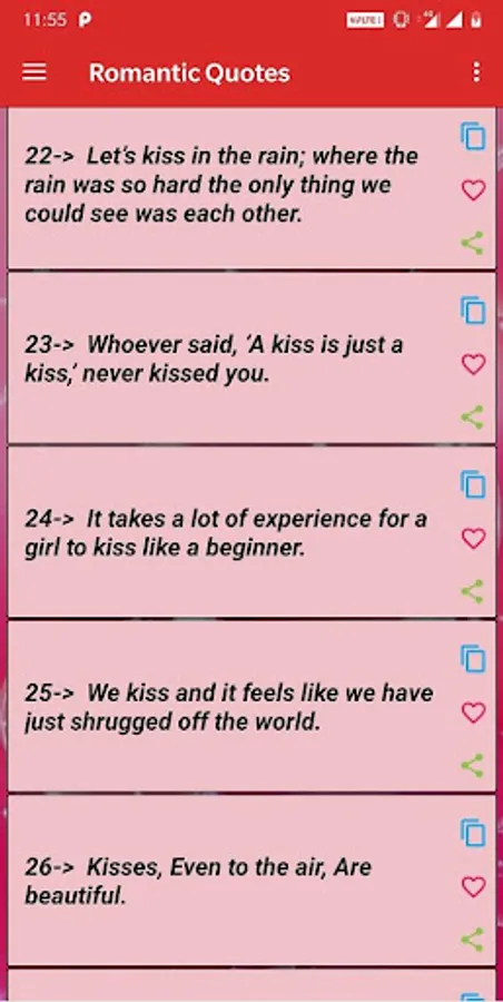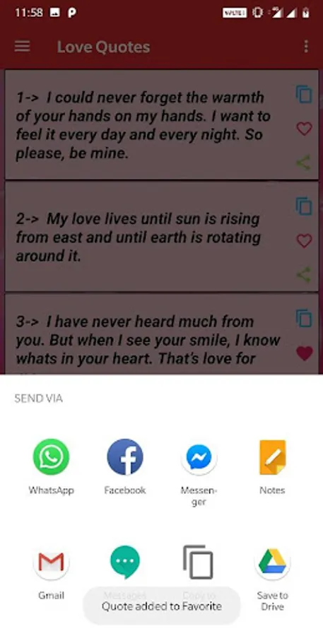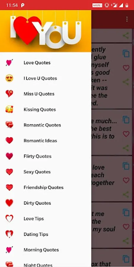 Features of the app Love Quotes: