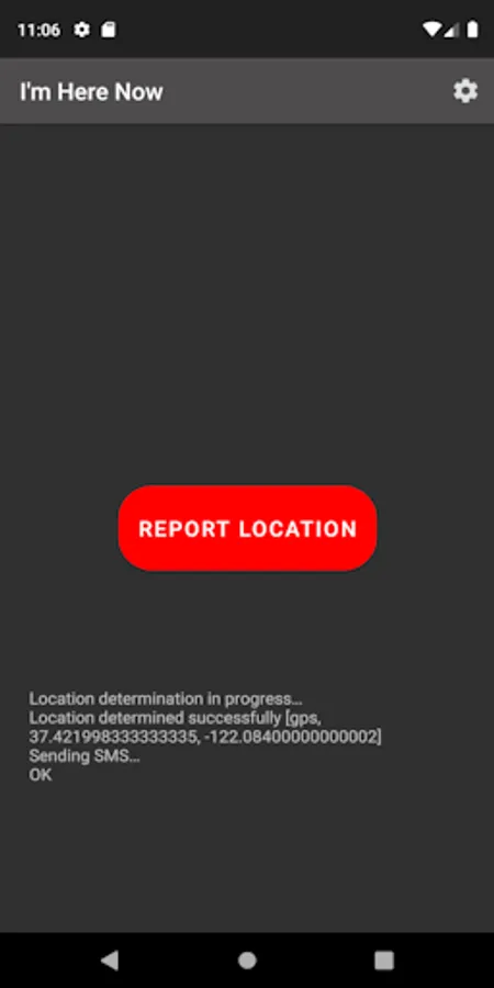 I'm Here Now will quickly determine your location and send your coordinates via SMS to the number you specified. No internet connection required. Is One Button.