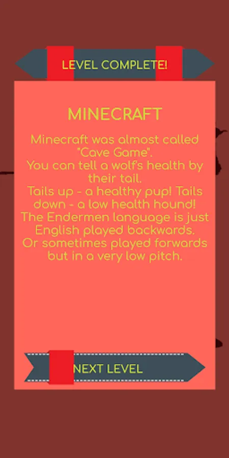 At the completion of each level, you will learn interesting facts about the game that you guessed.