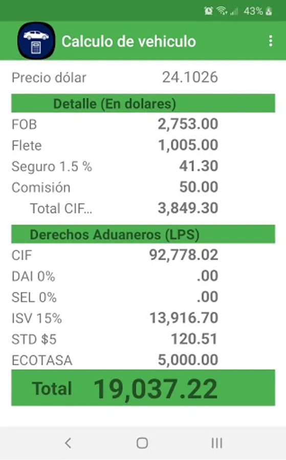 Vehiculo Calculadora Screenshots