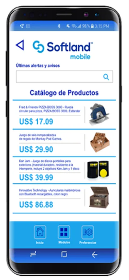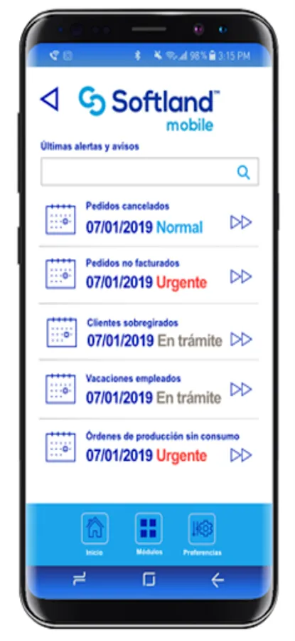 From the App you can access the Alerts, Price List and Approvals modules of Softland ERP, as well as Softland HCM People Management.