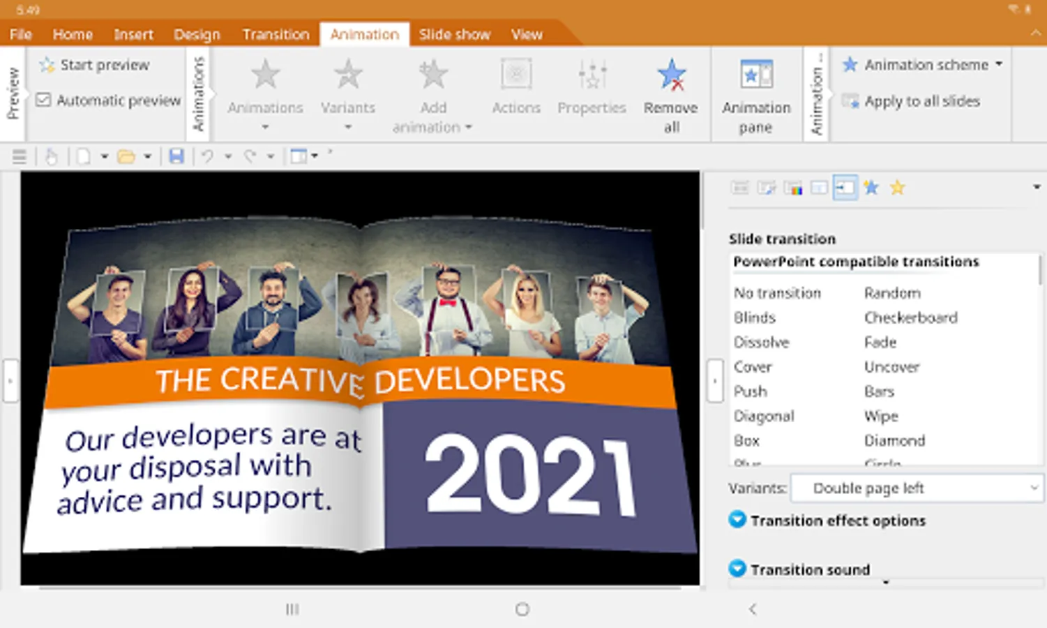 Almost all features of Presentations for Android can be used free of charge. The following additional features are available to you via an inexpensive subscription: