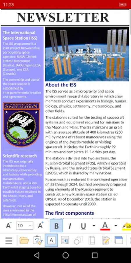 ► Open and save OpenDocument files (compatible with OpenOffice and LibreOffice), RTF and HTML