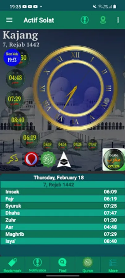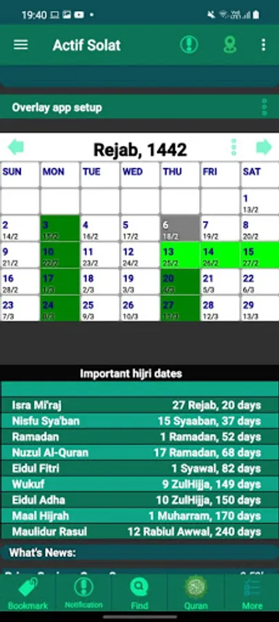 Auto silent ringer mode and manual silent mode. Sahur notifications integrated with a complete hijri calendar reference for sunat or compulsory fasting day. Nearby mosque or mosque.