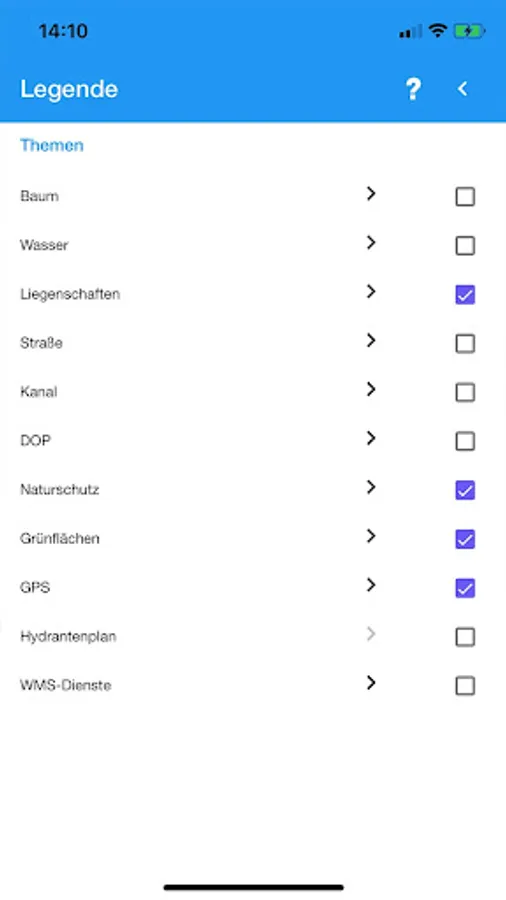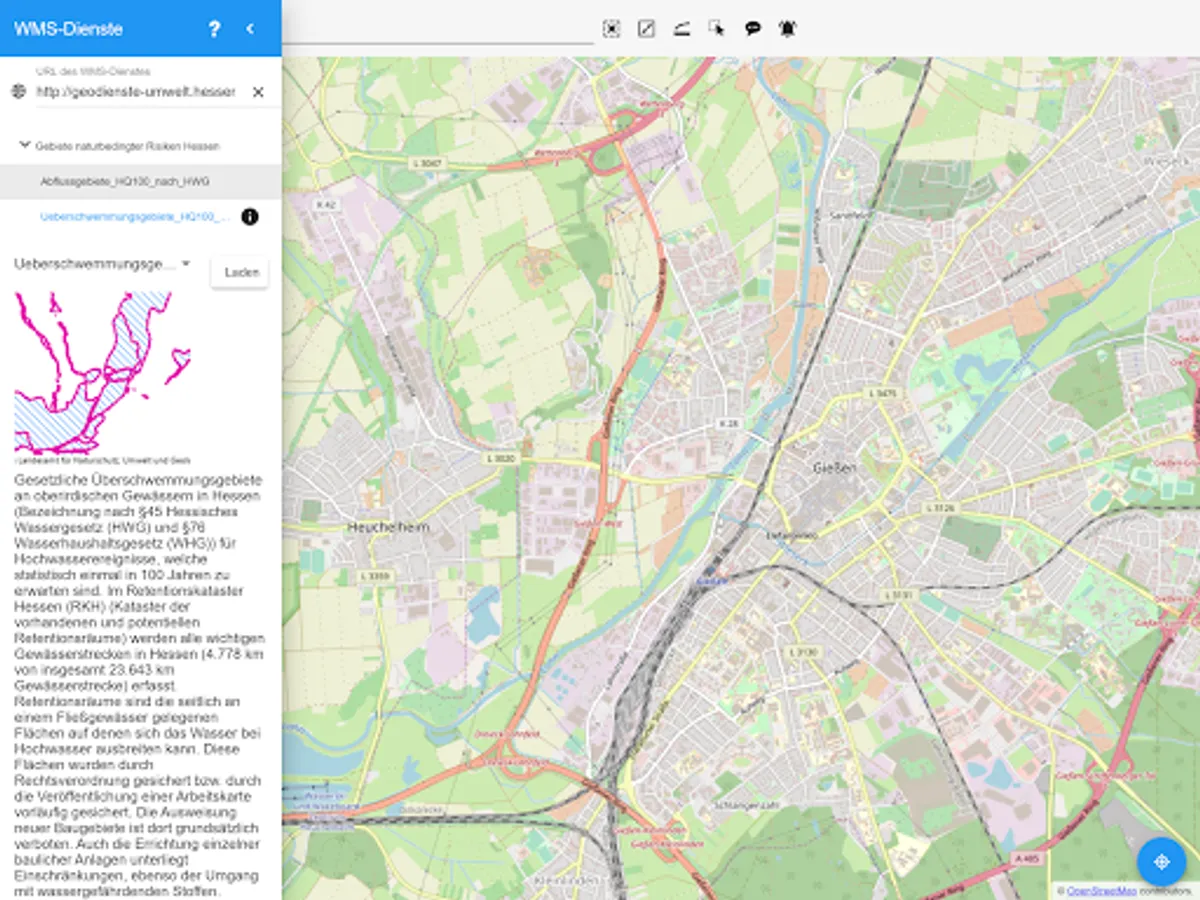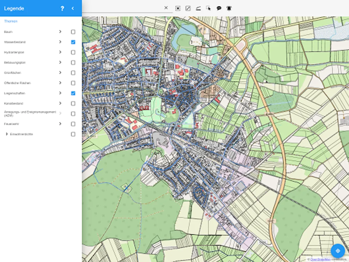 Control map content using the legend. Overlay your card with thematic content from WMS services. Measure distances and areas or mark out radii.