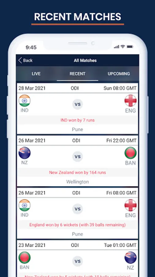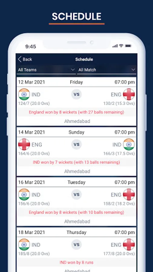 ✔ Cricket Live Score & Schedule app you will get live updates on all the formats of Cricket like ODI, Test, T20, T20I, League, ipl13 as well as all the international series.