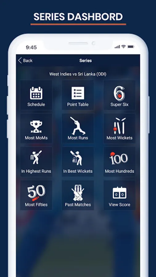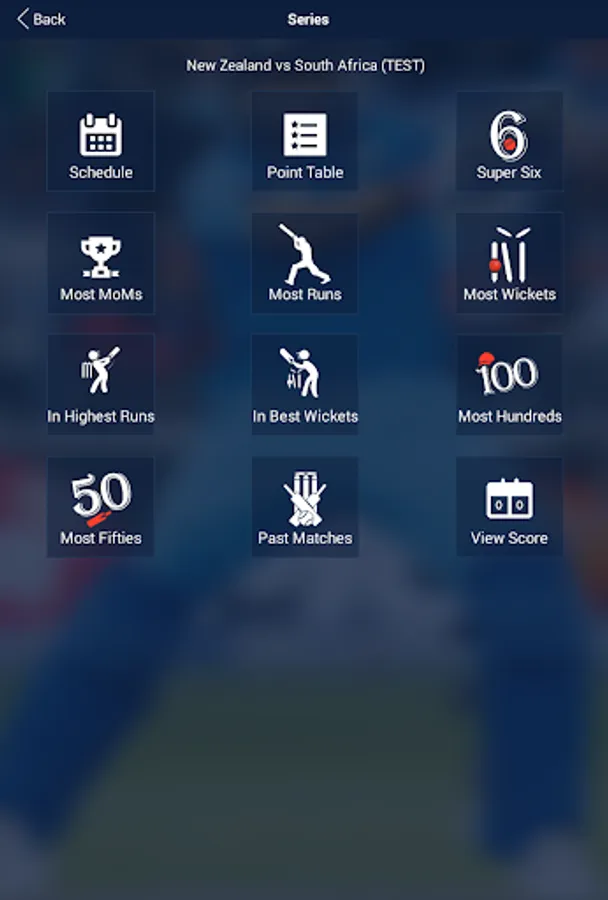 ✔ Including features like Summary, Full Scorecard, Point Table, Most Runs, Most Wickets, Most Hundreds, Most Fifties, Most Sixes, Past Matches Statistics.