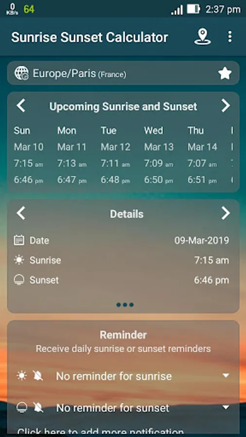 • timely notifications: set personalized notifications for upcoming sunrise and sunset events.