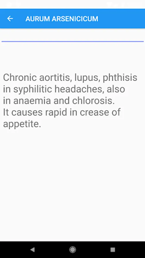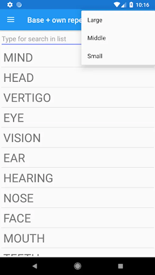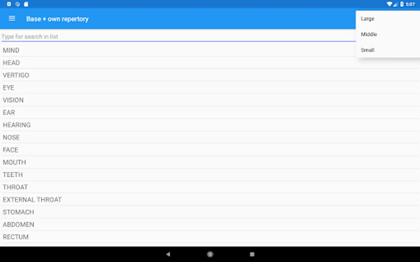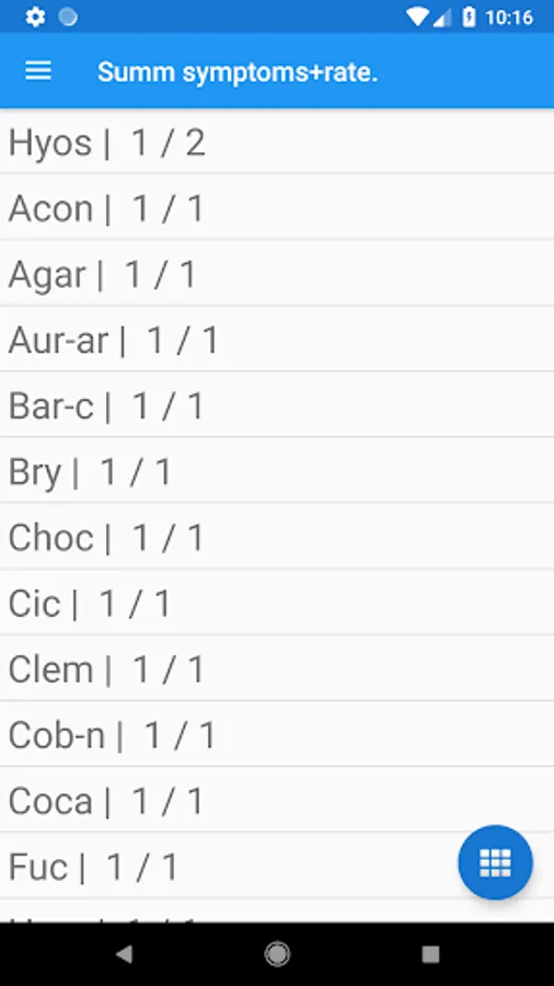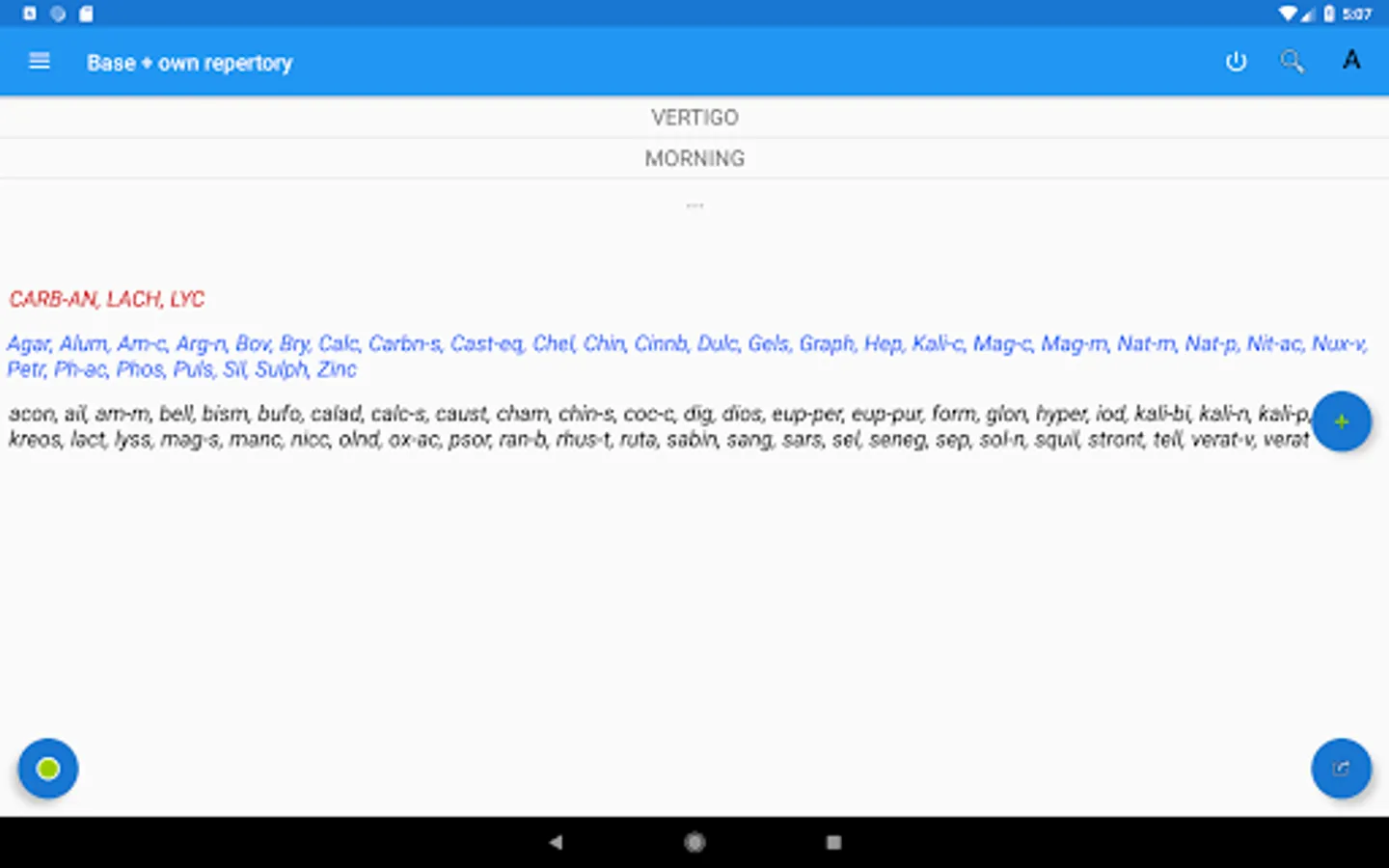The app contains a homeopathic repertory of 73695 symptoms, which you are familiar with using the Homeopathic Repertory app and Materia Medica, in which 1118 preparations are described. Results of repertorization are presented in the form of a list of remedies or as a table. The results can be sorted by 3 algorithms: covered symptoms, the grade of remedies and the sum of these values.