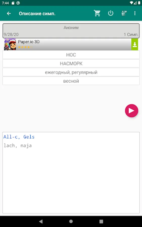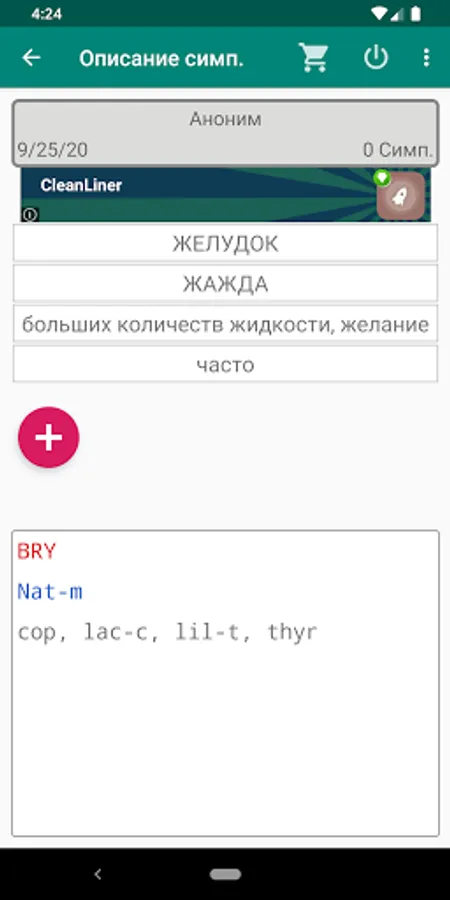 The app contains a homeopathic repertory based on Kent's repertory in Russian and tools for its use.