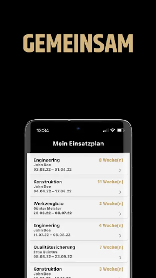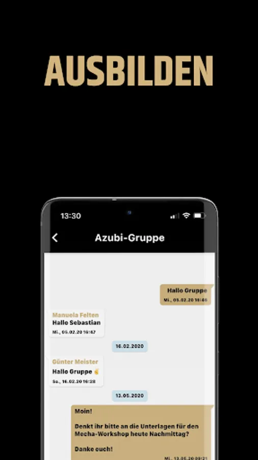 The app tells you when, with whom and where you will be deployed next in your company. Of course, your vocational school days and holidays are also displayed. Thanks to the integrated message function, you will not miss an appointment and will be automatically informed about activities.