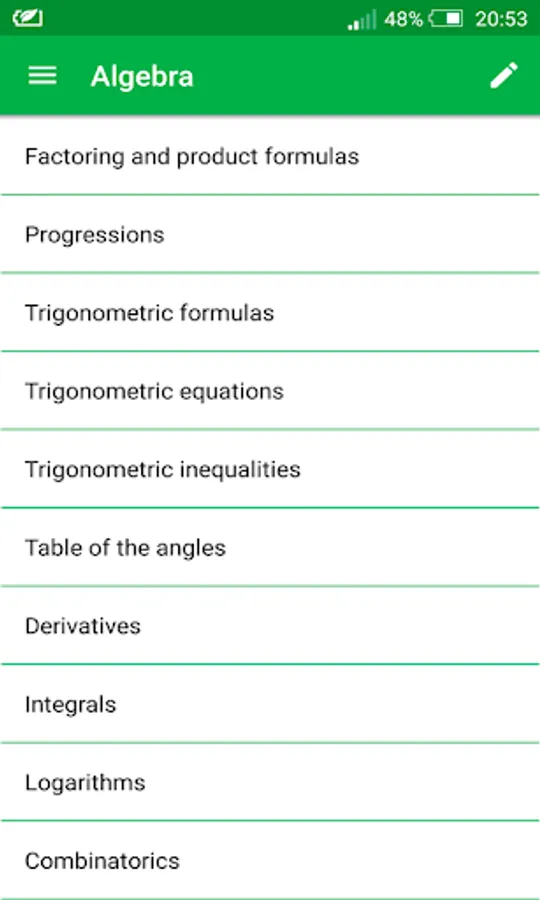 All essentials math formulas and equations in one app - that's great!