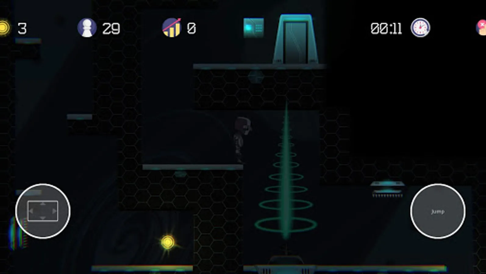 In addition to overcoming the traps you have to collect "solar" balls, which are necessary for the appearance of the button. Pressing the button opens the door and gives you the opportunity to proceed to the next stage.