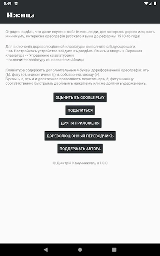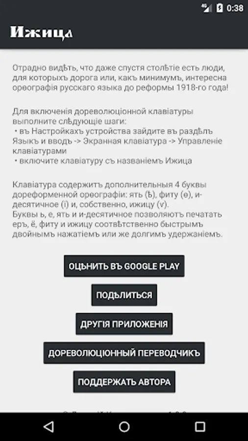 Let me introduce you to the pre-revolutionary keyboard, which contains in addition to the usual letters of the modern Russian alphabet four more that were excluded by the reform of 1918: yat (ѣ), fitu (ѳ), i-decimal (i) and, in fact, izhitsa (ѵ) .