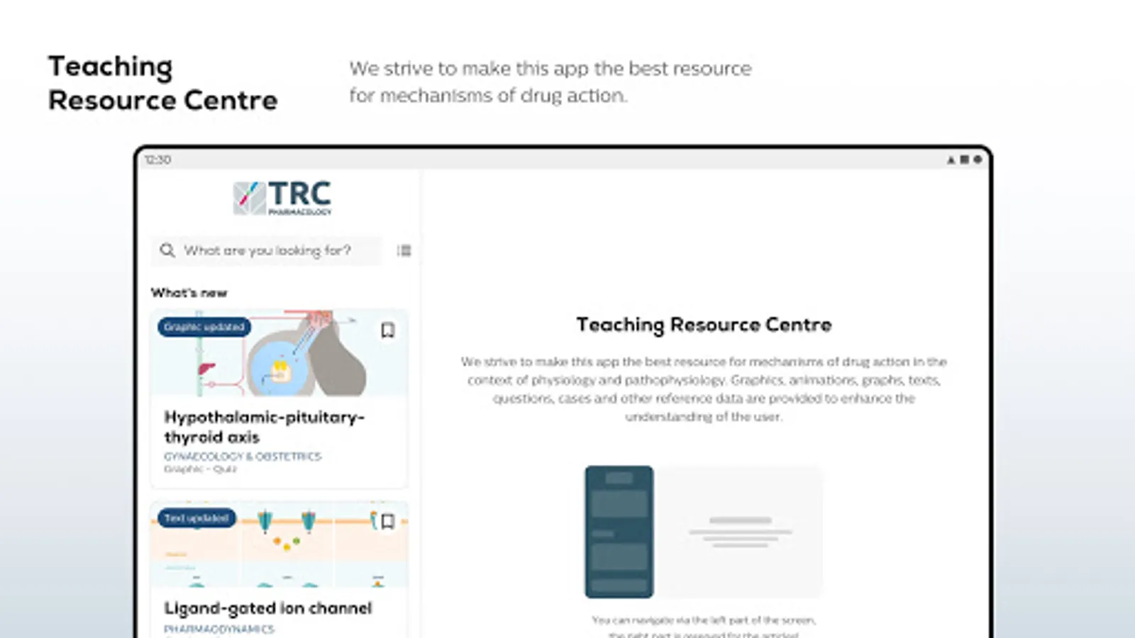 The TRC and TRCapp provides basic pharmacological knowledge: pharmacodynamics, pharmacokinetics, and drug mechanisms in context of (patho)physiology.