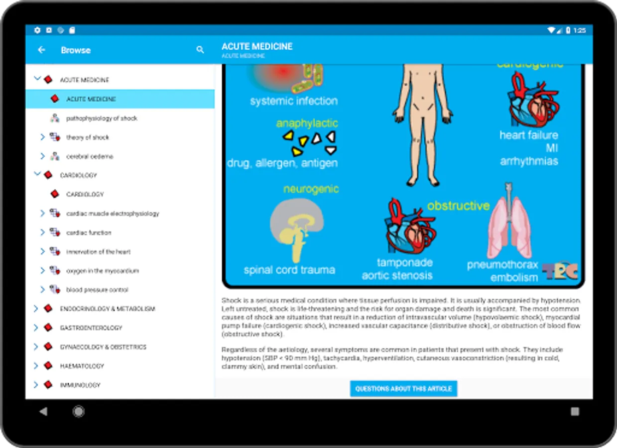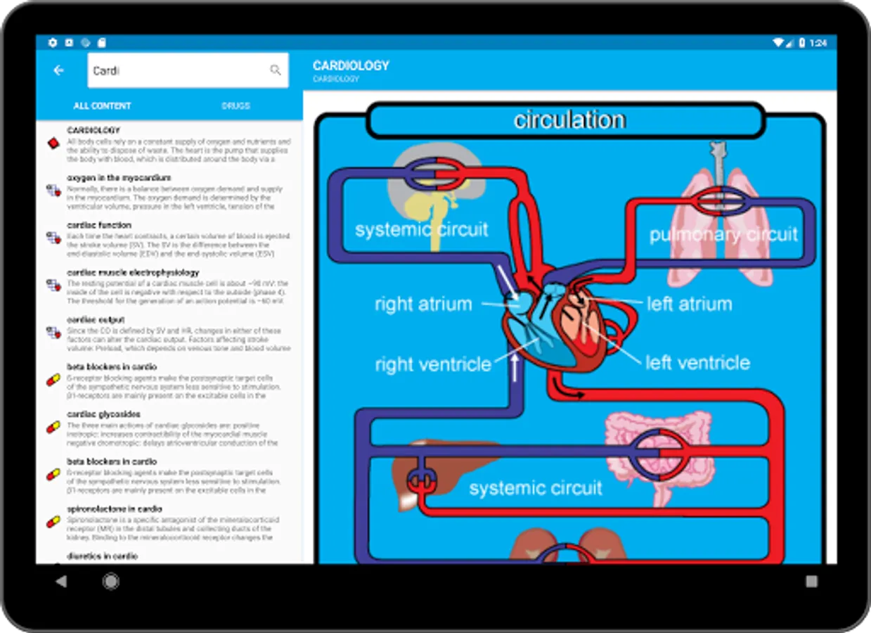 We strive to make this application the best resource for mechanisms of drug action in the context of physiology and pathophysiology by creating each topic in cooperation with an expert from the field. Graphics, texts, questions, and other reference data are provided to enhance the understanding of the user.