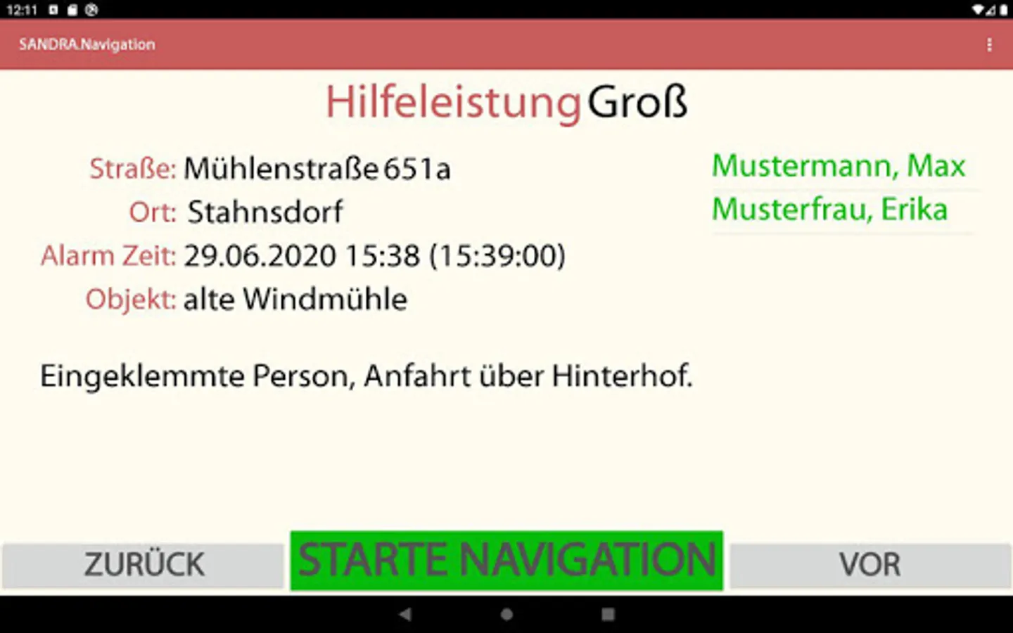 The alarm is sent directly to the tablet. Just press "STARTE NAVIGATION" and you're ready to go. You can also see at a glance which comrades have agreed.