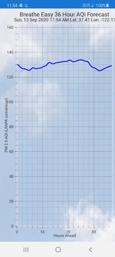 Breathe Easy predicts air quality for up to 36 hours into the future using multivariate mathematical analysis. Breathe Easy analyzes wind pattern information from the National Weather Service, topography, current wildfire data from NASA, the World Air Quality Index and Purple air data. Breathe Easy displays a user friendly graph on your phone that shows the predicted air quality index. This helps you to avoid the worst of the bad air.
