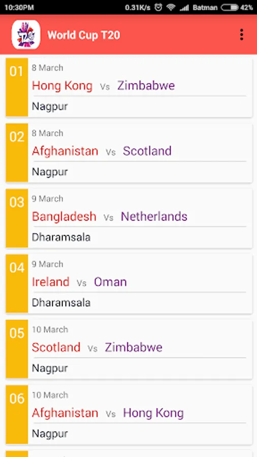 A no nonsense app to check the schedule of T20 world cup 2016.