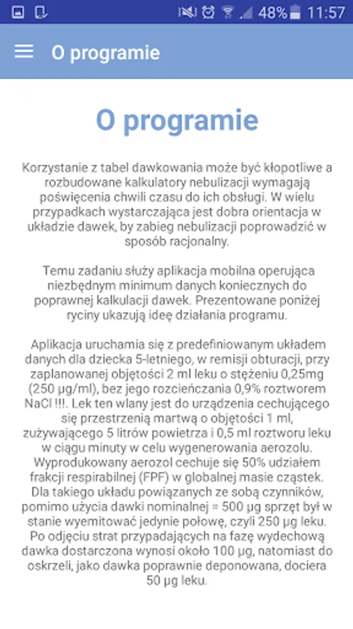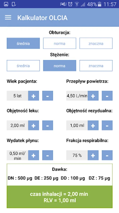Calculator to calculate the correct dose of the drug designed for doctors and patients, in order to evaluate the appropriate time inhalation using a specific nebuliser