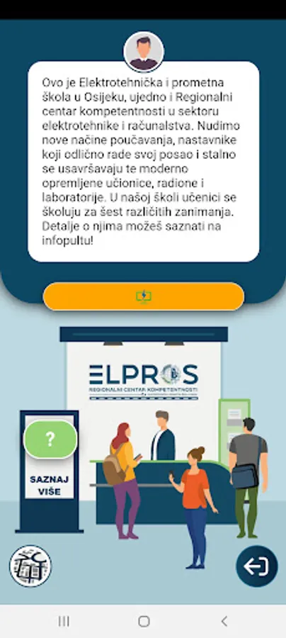 The aim of the application is in a fun and interactive way to provide elementary school students with an insight into the professions in the field of electrical engineering and computer science for which they can be educated at the Electrical Engineering and Traffic School Osijek.