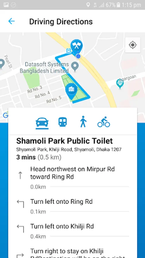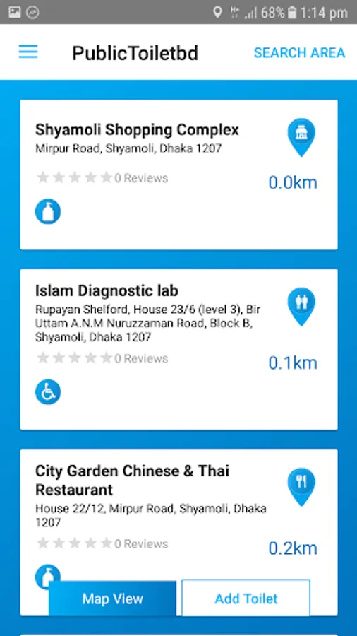 Currently the app has listed toilets of Dhaka Metropolitan city and toilets in both side of following national highways - Dhaka to Chittagong/Cox’s Bazar/Teknaf, Dhaka to Sylhet/Jaflong, Dhaka to Khulna/Mongla, Dhaka to Dinajpur/Banglabandh. Gradually more national highways will be included.