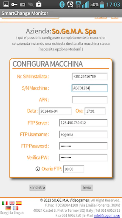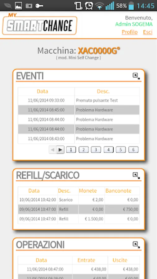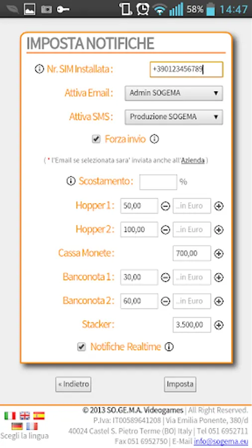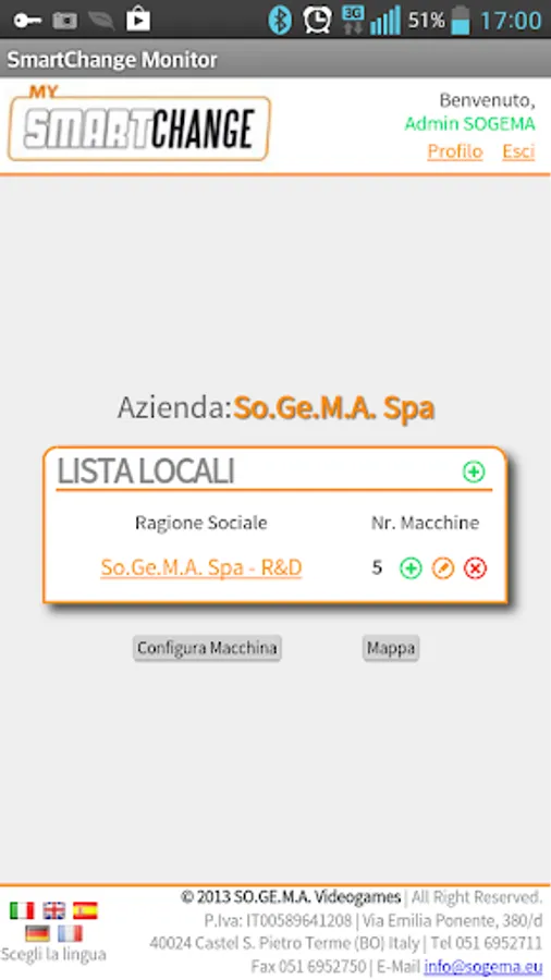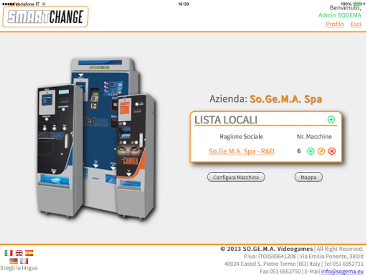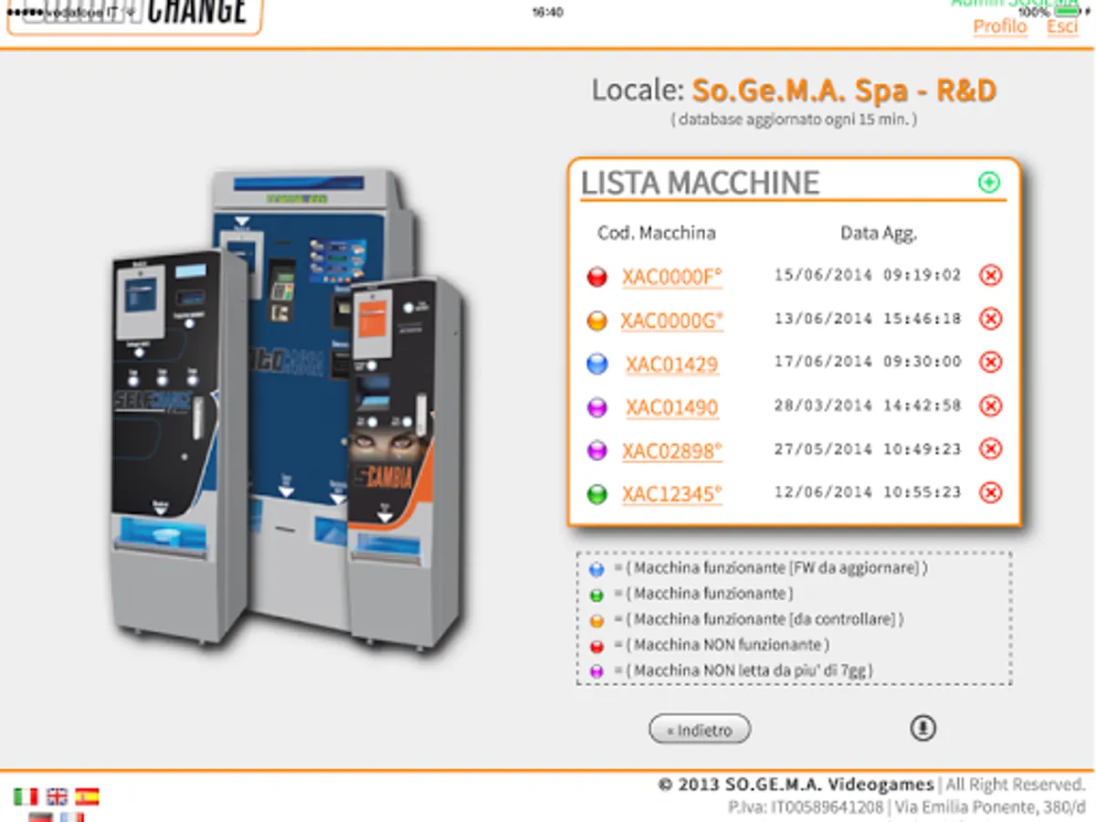 Novomatic Italia Spa (ex So.Ge.M.A. Spa) MoneyChanger remote control (modem option required)
