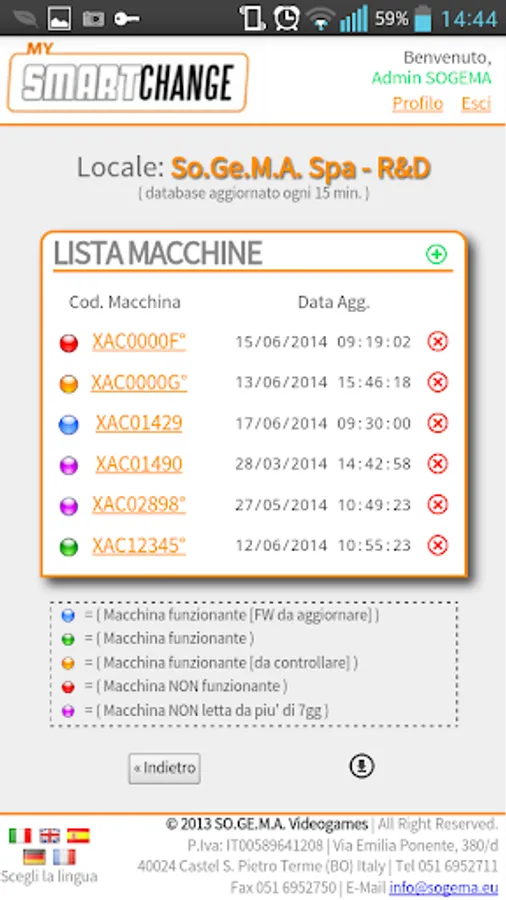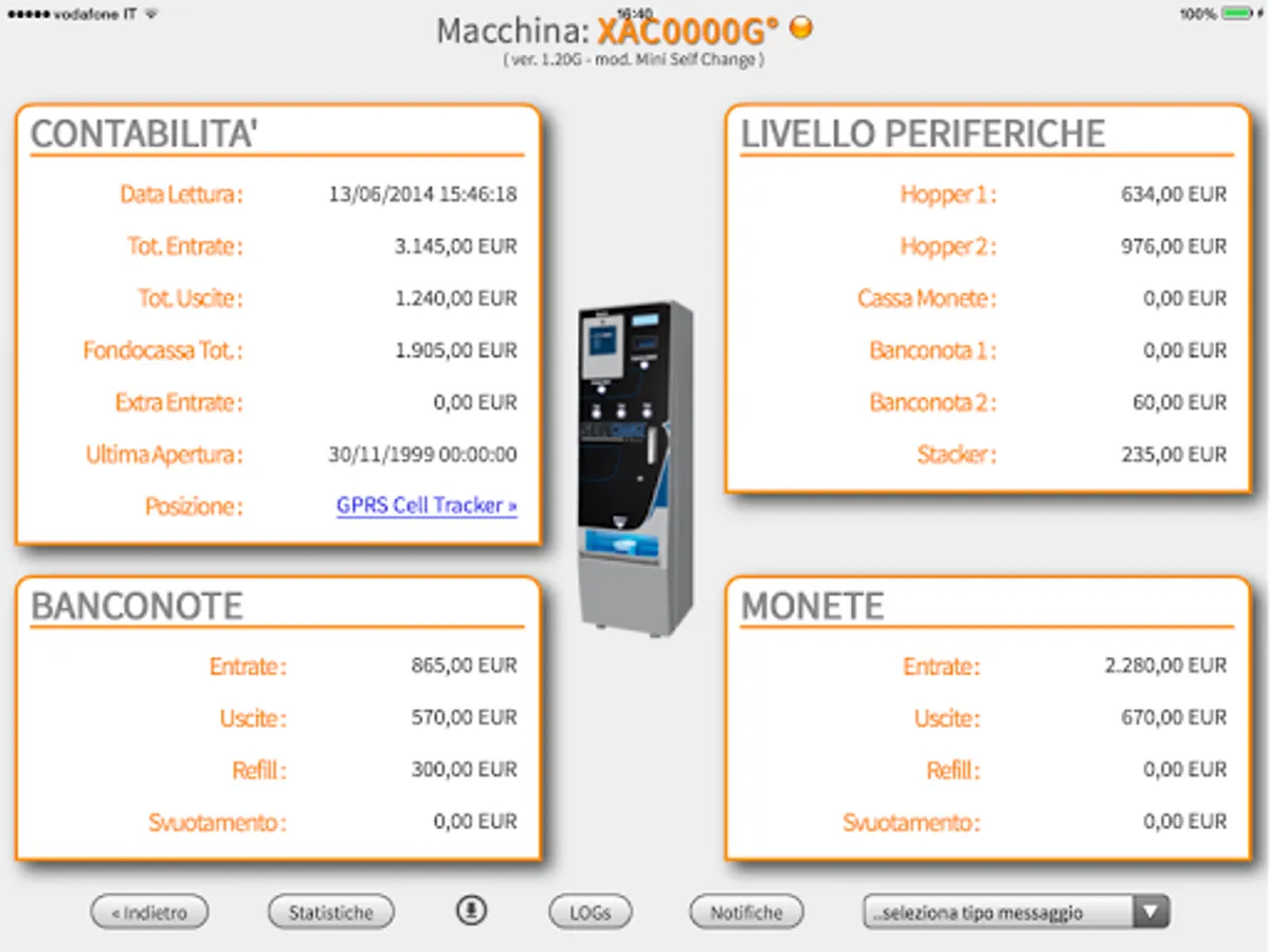The program allows centralized management of machines divided by more point of sales without size limits, and also manage access permissions via Bluetooth (BT option required).