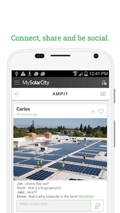 Track your solar energy production from almost anywhere! MySolarCity gives you the power with real-time mobile access to your solar monitoring. Also share the excitement of clean, more affordable energy with your friends and family when you’re on the go. You’ll get a reward for each person who signs up with SolarCity through your referral.