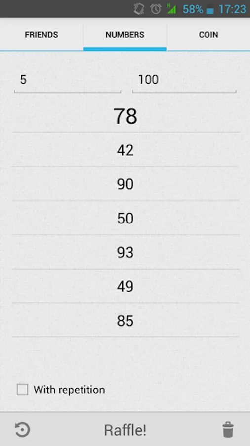 This app lets you make raffles with your friends, get random numbers within the desired range and flip coins.