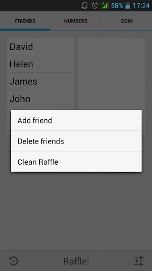 And if you just need to flip a coin, select COIN tab and Raffle!