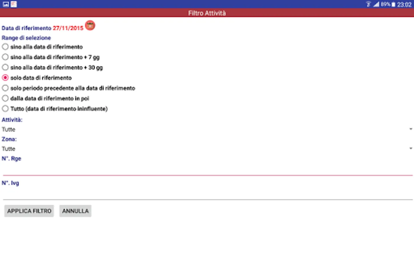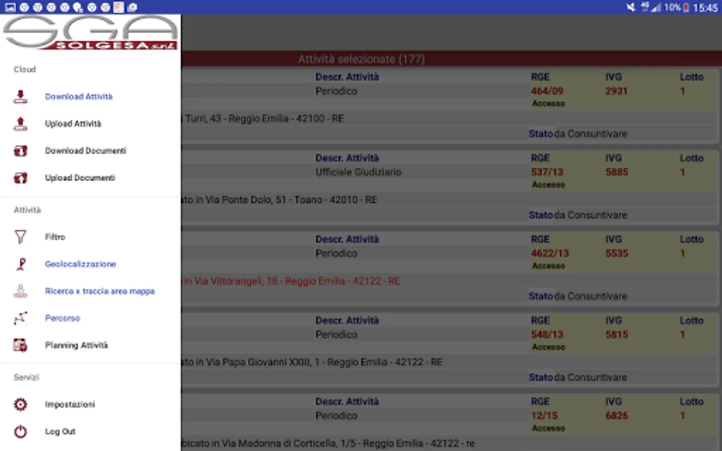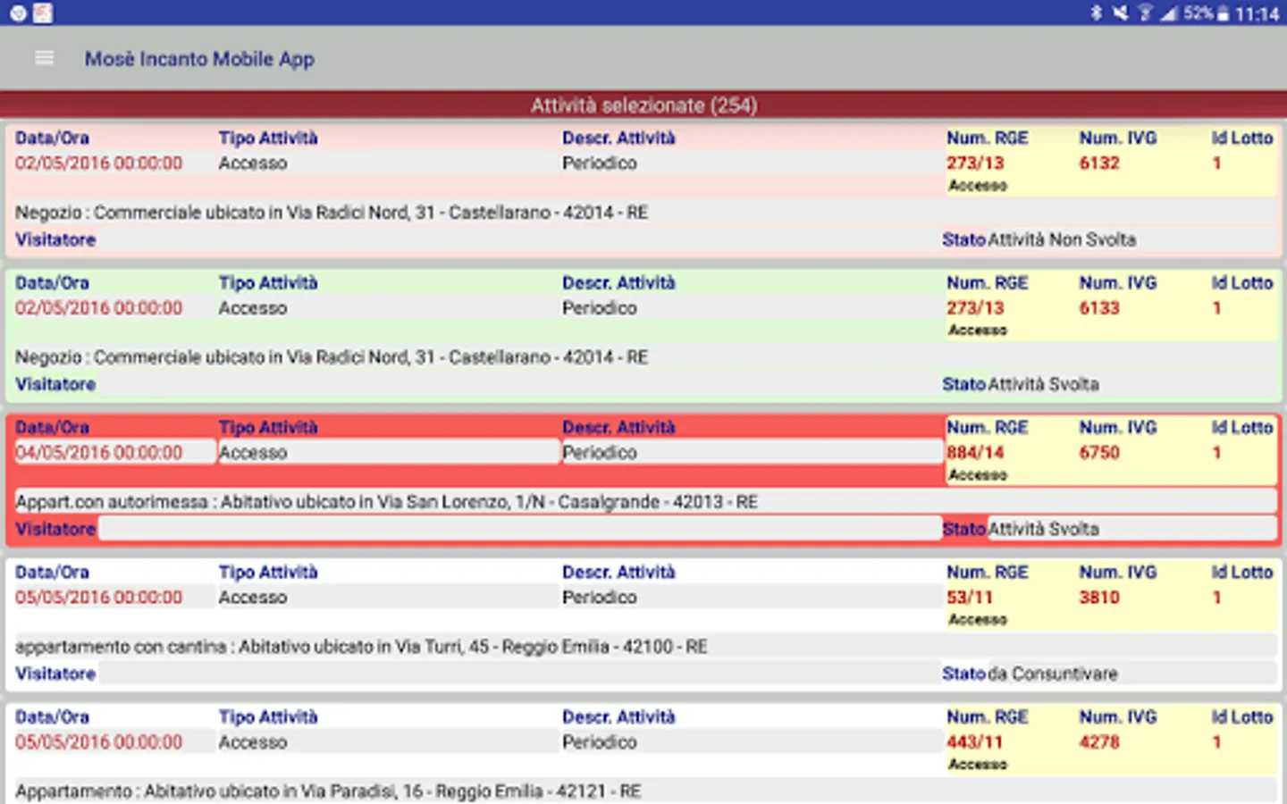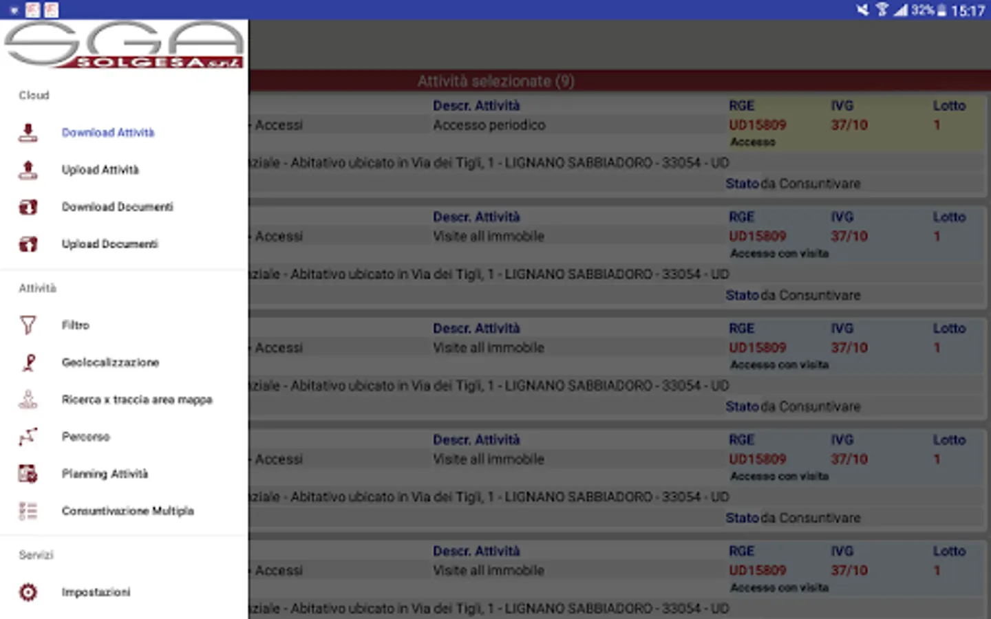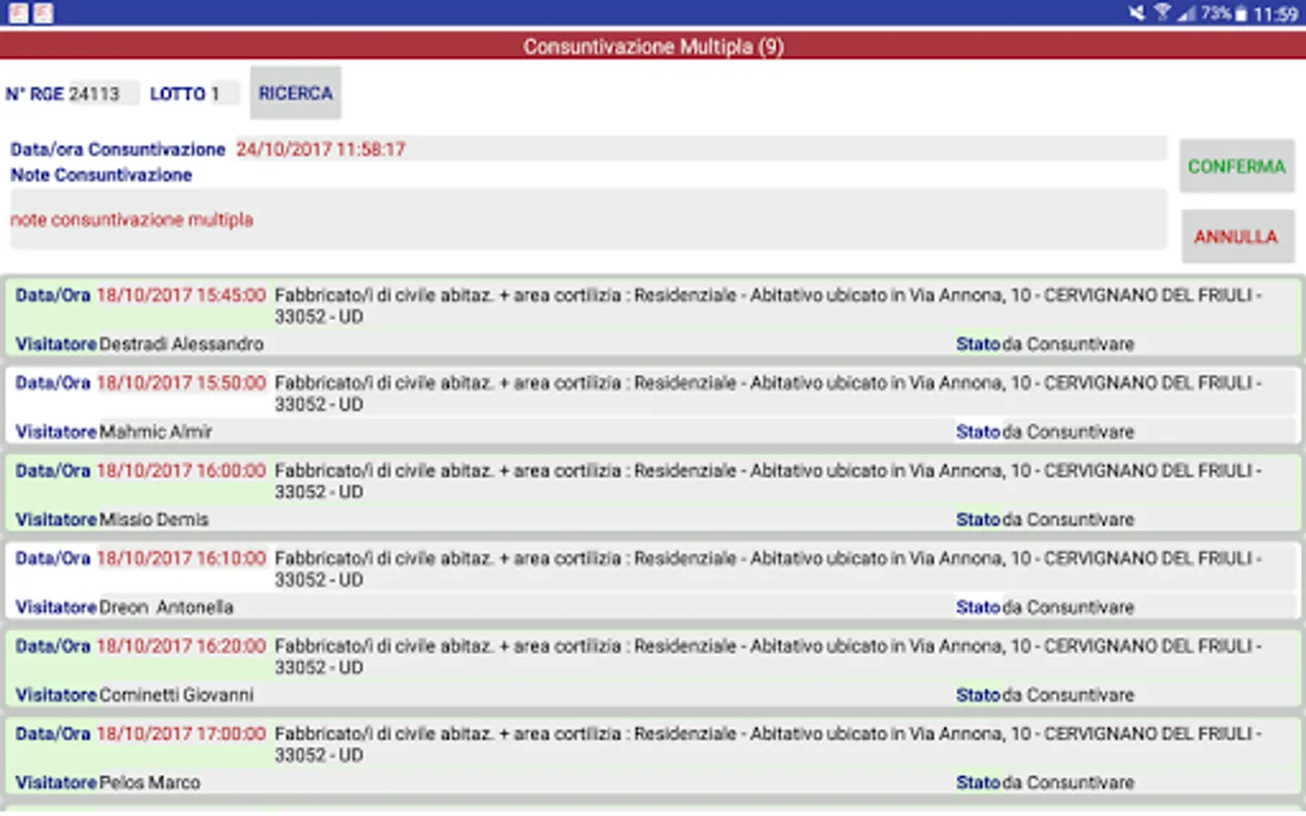 • Consuntivare in a massive all Access activities with tour through the filter Nr.RGE / Lot