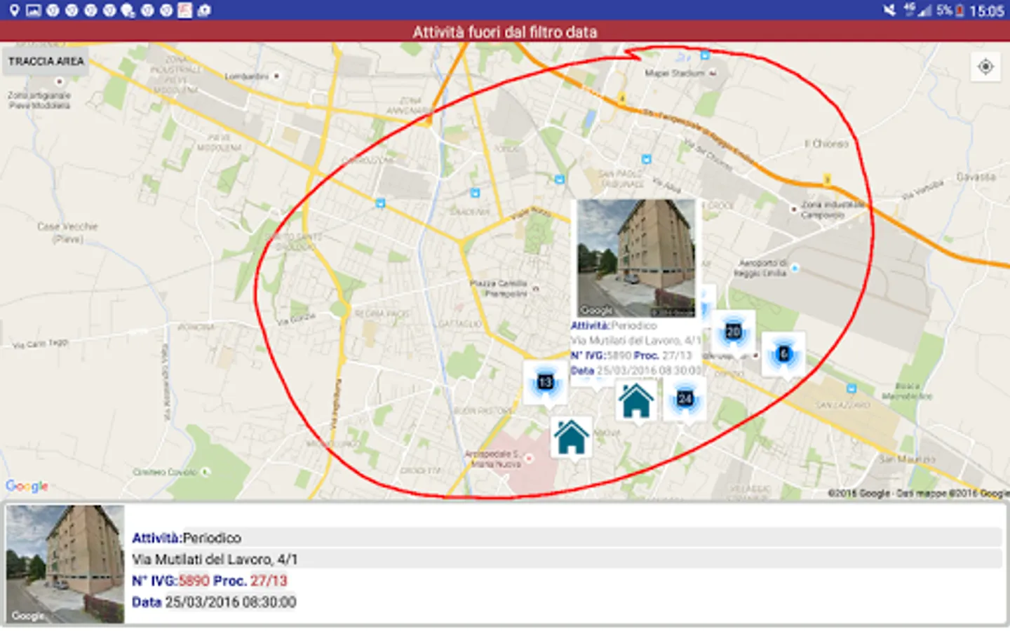 • geolocalize in real time on Google Maps activities with detailed information and viewing in Street View with markers / cluster of different colors to differentiate the day's activities from those of later periods and interactive management path / navigator.
